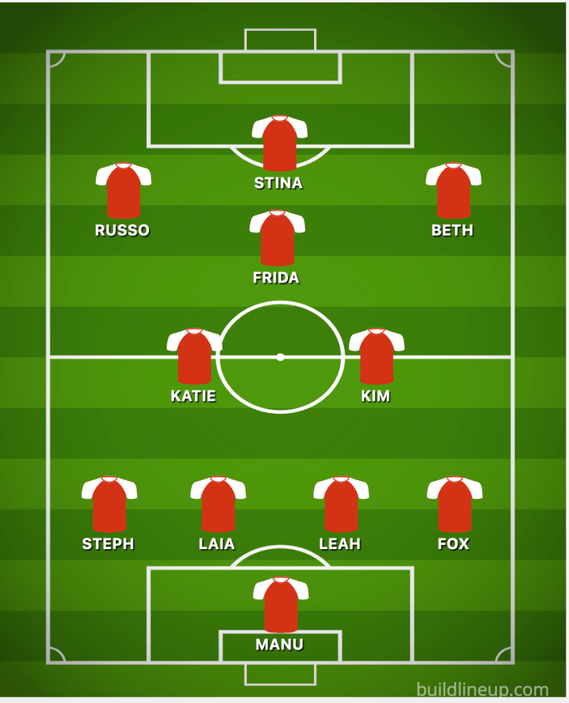 It goes without saying that our manager will not do any of this, but this lineup would be good. I think we need to have Kim and Katie as our midfielders. Not only because we need Katie on that pitch at all times but because its unexpected and she can more than handle the occasion and the position.